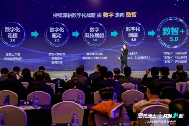 在12月20日“2024邦邦好朋友大会”中,邦邦汽服不仅展示了在“价值共生”战略下的创新布局与成果,更面向2024年发布了包括新模式、新领域、新循环、新动能及新服务的“五新计划”,携手好朋友共赴新程。围绕“新”动能,邦邦汽服资深总监李泽林在大会现场通过全面数字化的成果展现,对邦邦汽服“数智+”进行了详细阐述。