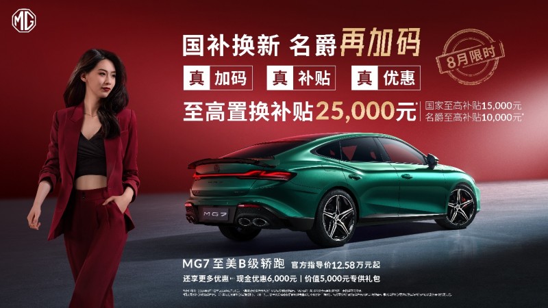 至美B级轿跑MG7至高置换补贴25000元